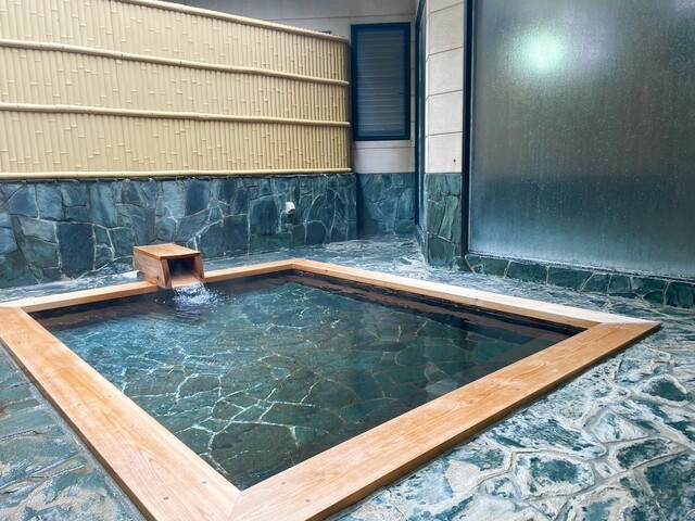 温泉はナトリウム塩化物泉で、開花期には椿の花々も楽しめる露天風呂が好評。