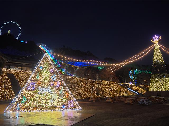 関東最大規模!約600万球が夜の森を輝かす圧巻のスケール。園内の起伏や斜面を活かした都心ではなかなか味わえない幻想的なイルミネーションをお楽しみください。