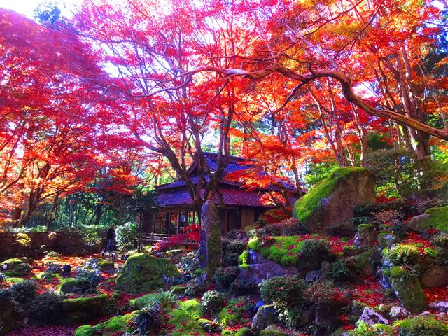 今年もこの場所が真っ赤に染まる季節になりました。約2000坪の敷地には、約300本を超えるもみじの大木が一斉に色づく様はまるで真っ赤な紅葉の絨毯必見です!
