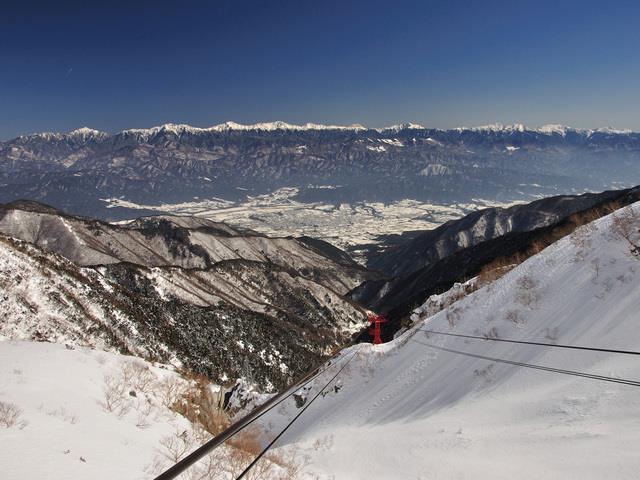 大きなガラス窓からは、南アルプスや伊那谷、天候が良い日には遠く富士山までも望むことができ、まるで雲の上にいるような開放感に包まれます。